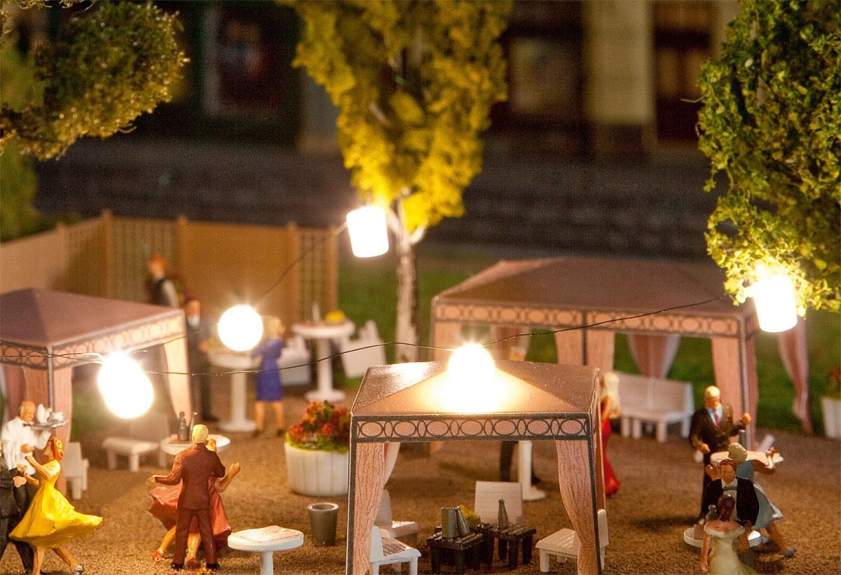 2 light chaines with 5 lampions each. 16 V alternating current voltage (AC).