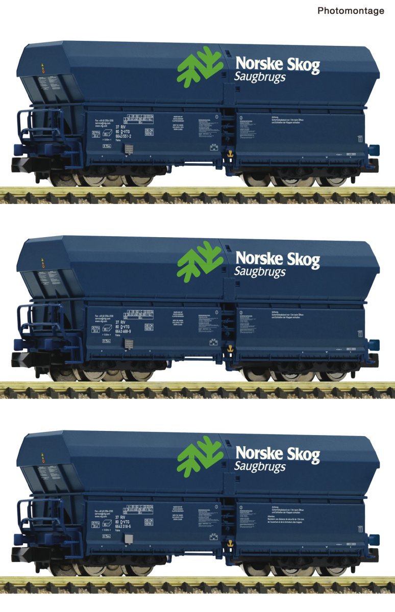 Set of three "Norske Skog" self-unloading wagons, type Falns, of VTG.