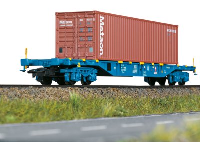 Containervagn typ Sgnss "Matson."Prototype: Four-axle type Sgnss container transport car for combined load service for the firm T.R.W., Brussels, registered in Belgium. Loaded with a 40-foot box container. The car looks as it did around 2020.Mod