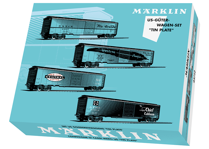 All the boxcars are in a "Tin-Plate" version constructed of metal.