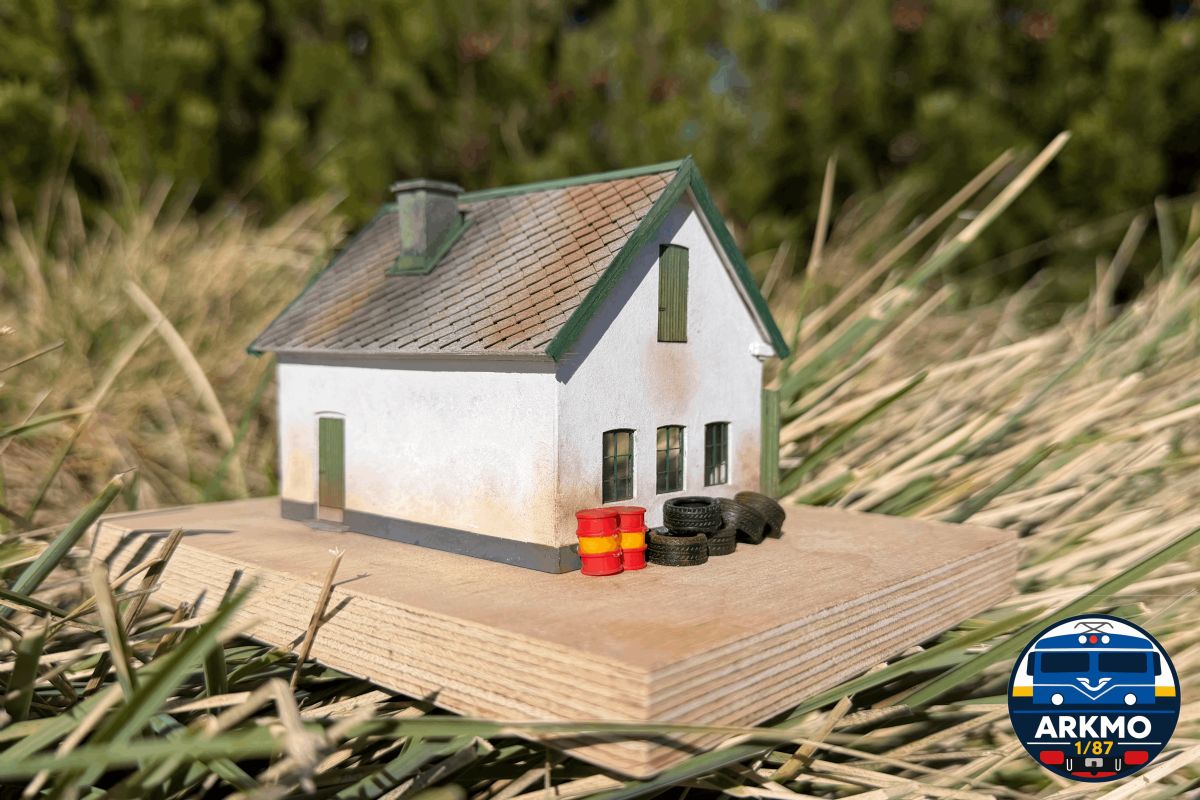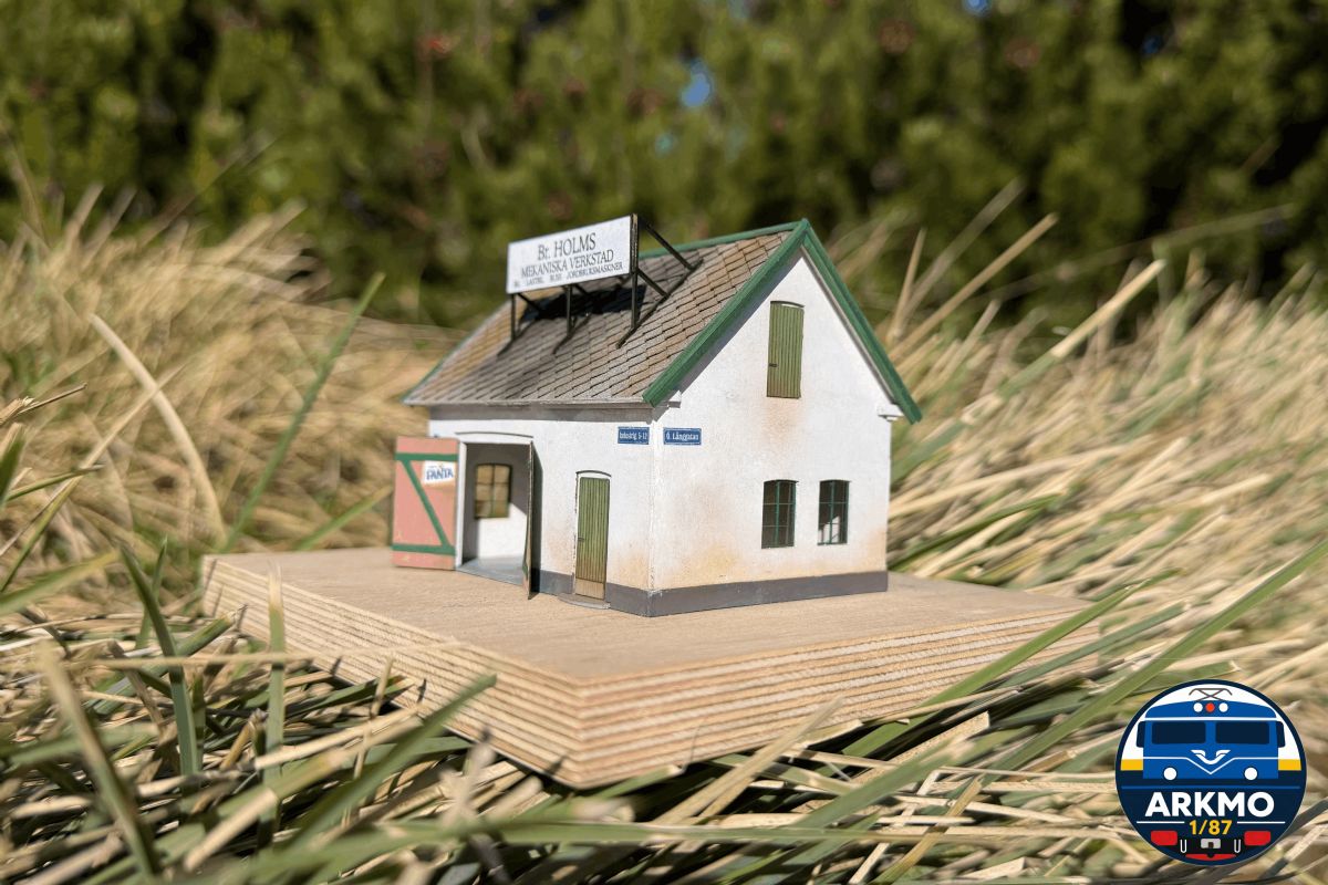 Br. Holms mekaniska verkstad är en byggsats som inspirerats av ”smedjan” på min morfars gård. Byggsatsen vänder sig till den lite mer erfarne modellbyggaren eftersom takläggningen kräver sin teknik. Du kan med lika förebildsenligt resultat välja att klä taket i papp.