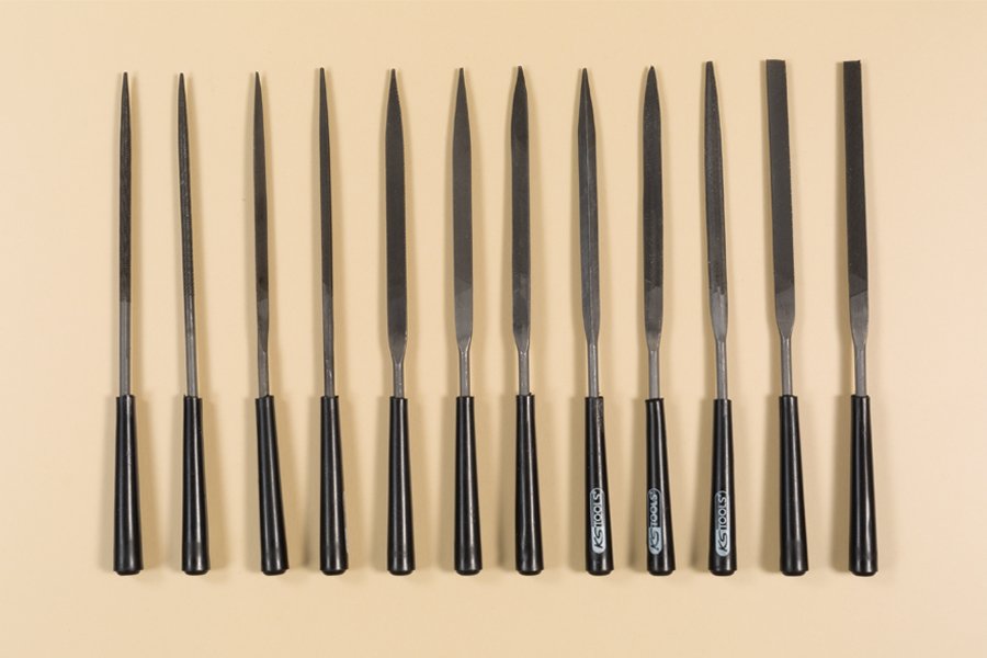 12 st. olika Filar med gjutna handtag.Flata, fyrkantiga, runda, halvrunda etc. Vilket betyder att de har många olika användningsområden.