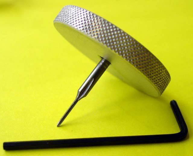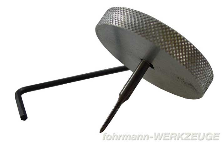 Tap wrench aluminium M1 - M3.Tap wrench, 37 mm Ø, aluminium, for hand taps M 1 - M 3. Tap is held by a pressure screw.
