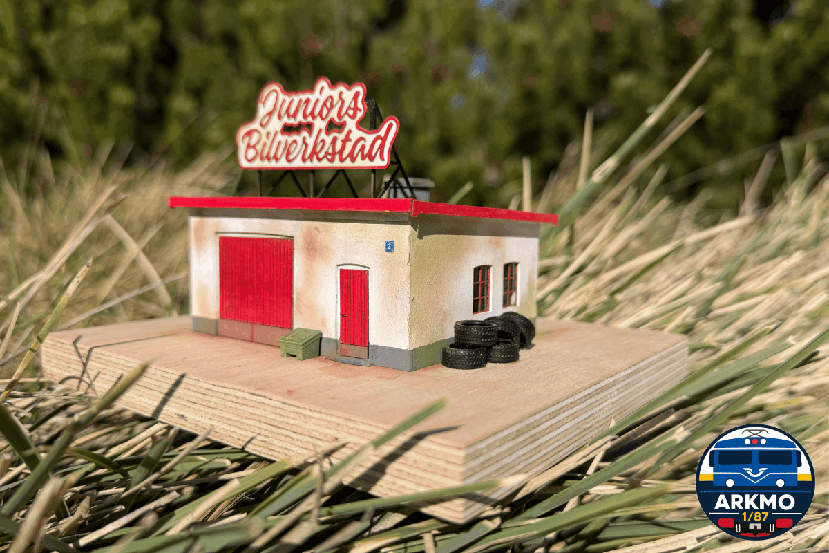 Juniors bilverkstad är en byggsats som avbildar en typisk liten verkstad i en svensk stad. I byggsatsen ingår allt som behövs för att bygga Juniors bilverkstad och det medföljer en påse med utsmyckningsdetaljer.
