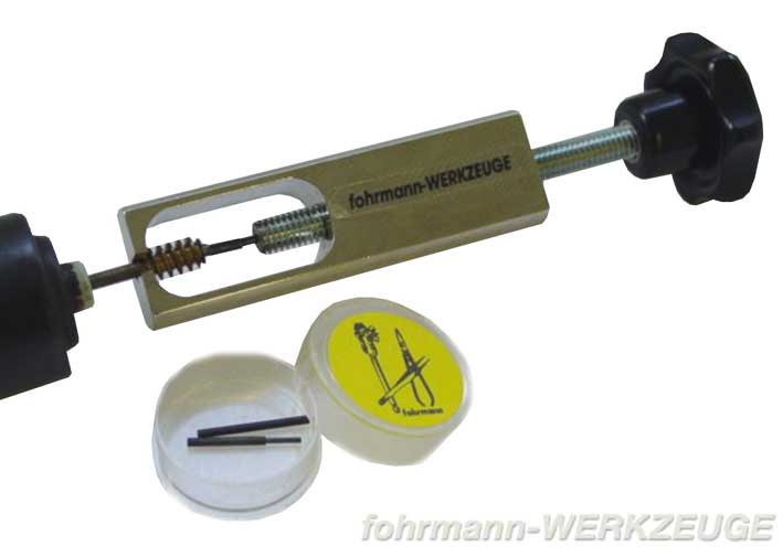 Body made of brass, spindle made of steel with 3 hardened spindle centres for axes of 1.0 - 1.5 – 2.0 mm dia.