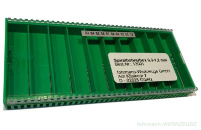 Twist drill set with 10 HSS drills DIN 338. Supplied in a clear plastic box with a sliding lid, enabling the drills to be removed separately.