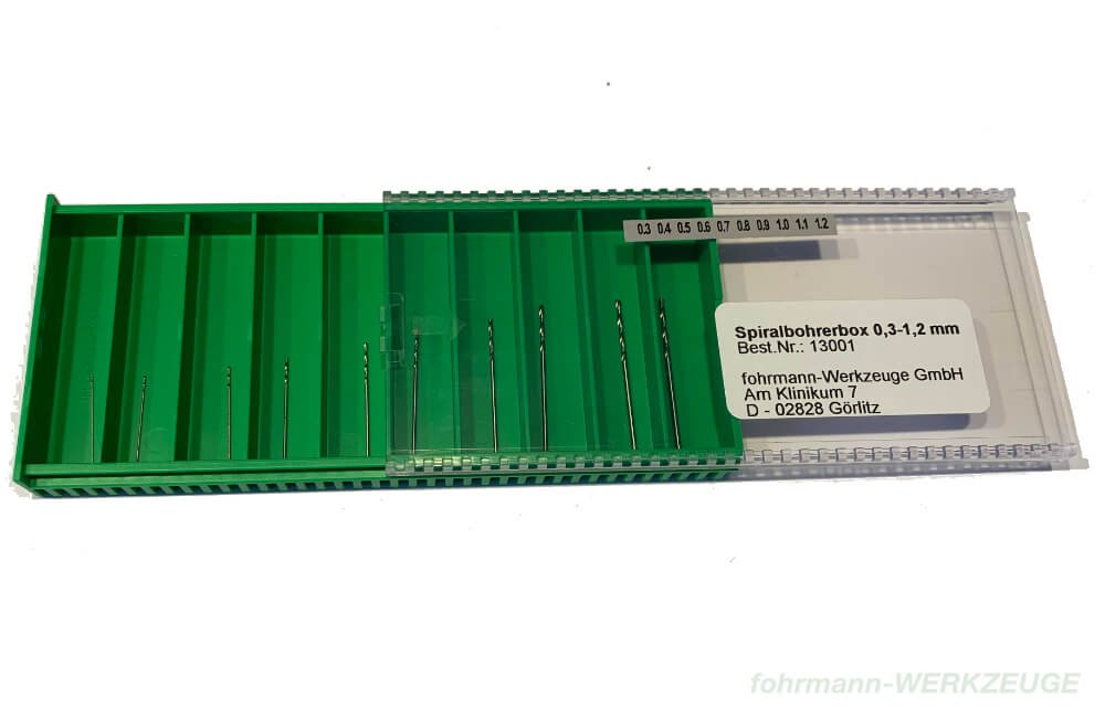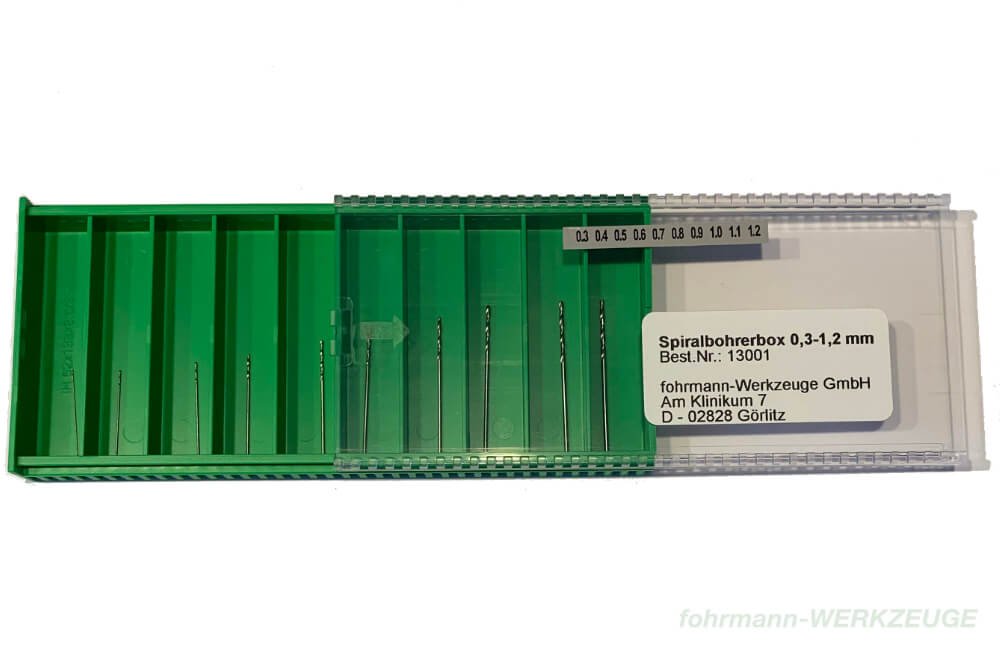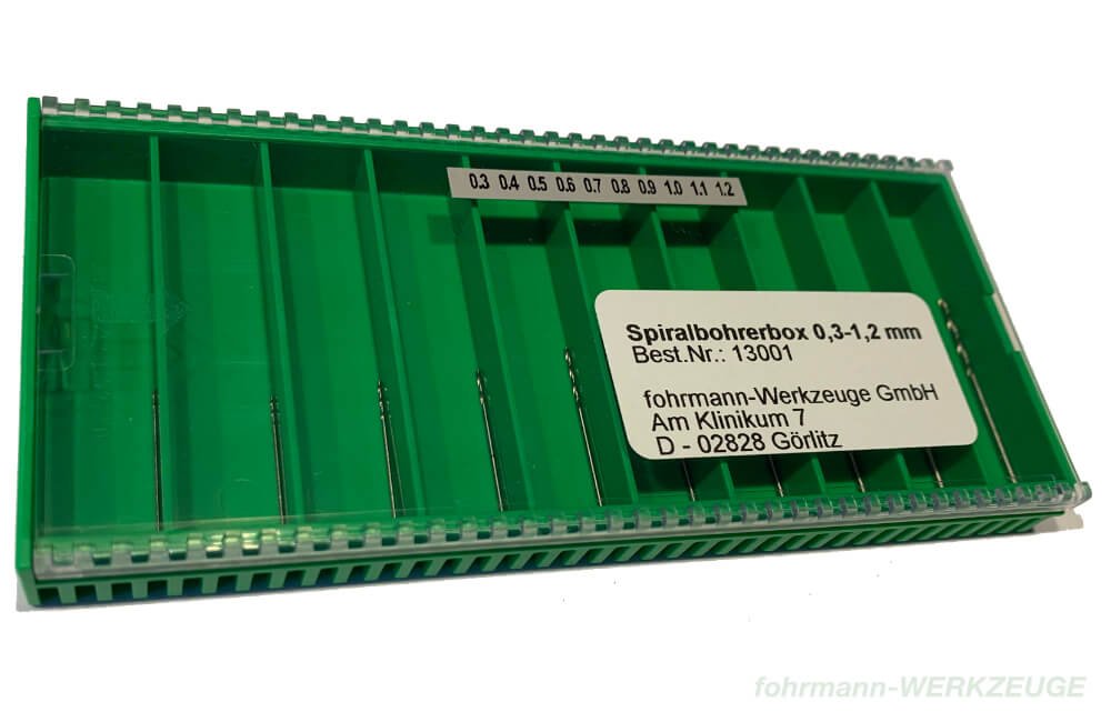 Twist drill set with 10 HSS drills.
